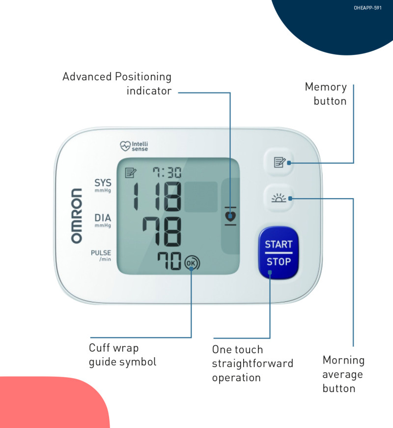- Манжета должна быть плотно зафиксирована, но не слишком туго - ровно настолько, чтобы под нее было сложно просунуть 2 пальца. Это пространство необходимо для точных показаний. В цифровых мониторах артериального давления OMRON используется осциллометрический метод измерения артериального давления, который определяет движение крови по плечевой артерии и преобразует это движение в цифровые показания.